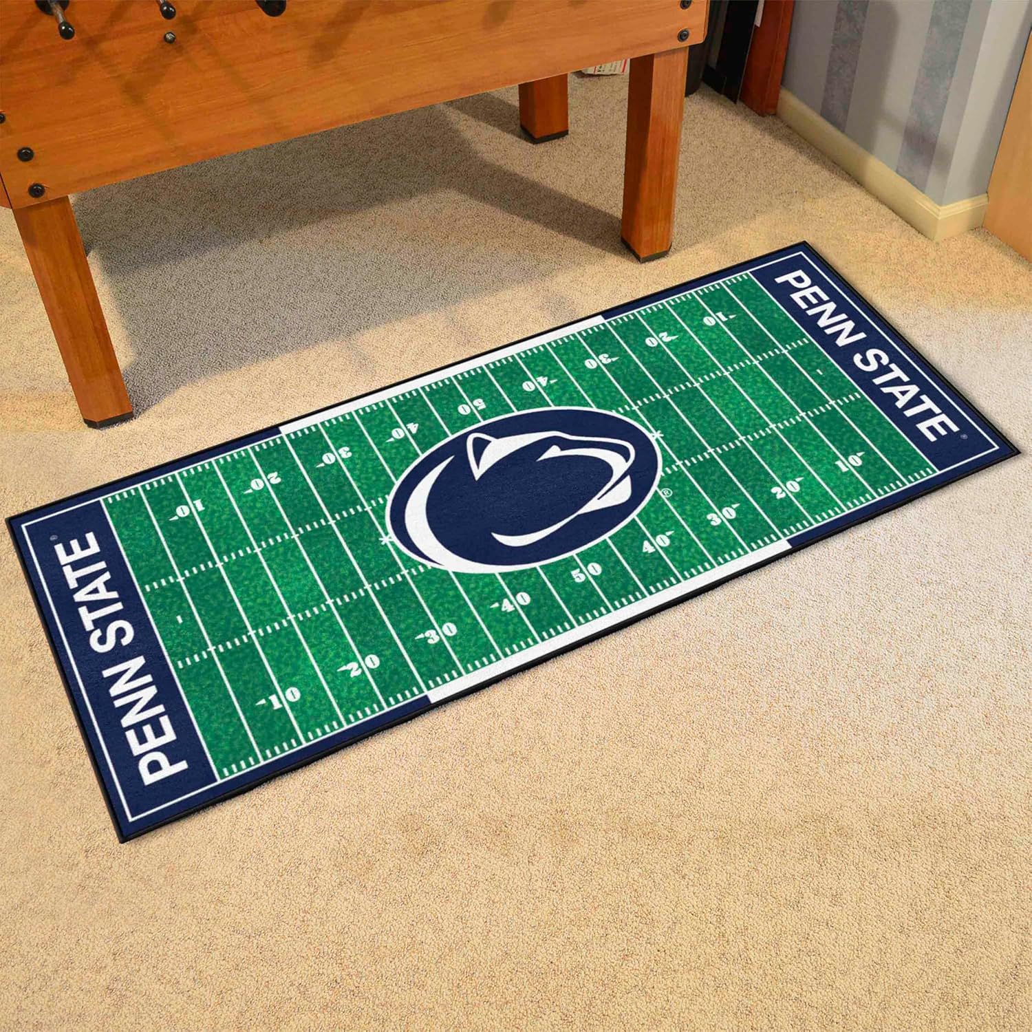 Step in the end zone from the comfort of your home or office with the NCAA football field runner from Fanmats. The 100% nylon carpet is designed to look like a football field and is Chromojet painted in the team colors. Non-skid Duragon latex backing is included for safety.